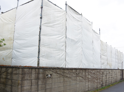 解体工事は、高所での作業が伴うため、ご近所に粉じんなどが飛散したりしないよう、周りに養生の組立を行います。養生をすることで、騒音やホコリを防ぎ、近隣の方のご迷惑を最小限にします。